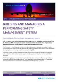 This course is aimed at people working within all aviation environments who are required to build, manage or directly support an SMS. By attending this course, you will gain a deep level of insight into how to develop, implement and manage an effective and performing SMS.