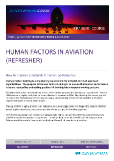 The aim of this course is to give a refresher in Human Factors as required by EASA. By attending this course, you will re-explore the implications of error and gain deeper understanding of how to find workable methods to improve standards in human performance.