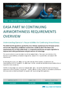 This course is aimed staff involved with and interfacing with a CAMO in a civil or military environment. Including Continuing Airworthiness Managers, Maintenance Programmes Staff, CAMO Technical Specialists, Airworthiness Review Staff, Fleet Managers and Planners / Schedulers.