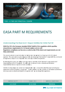 By attending this course, you will gain a high-level overview of the Operator’s requirements and responsibilities to Part M regulation. You will be made fully aware of the corporate and individual responsibilities required to meet compliance.