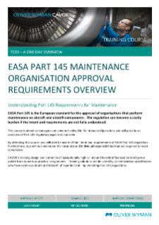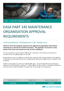 This course is aimed at managers and anyone involved in Maintenance Operations and will provide an overview of Part 145 regulatory aspects to consider.