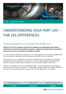This course is aimed at EASA Part 145 practitioners and allows delegates to build on their knowledge of EASA Part 145 regulation to understand the differences between EASA Part 145 and FAA FAR 145.