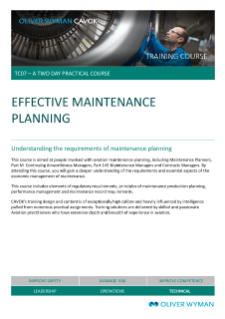 This course is aimed at people involved with aviation maintenance planning, including Maintenance Planners, Part M Continuing Airworthiness Managers, Part 145 Maintenance Managers and Contracts Managers.