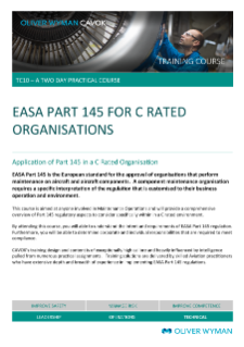 This course is aimed at managers and anyone involved in Maintenance Operations and will provide a high-level overview of Part 145 regulatory aspects to consider specifically within in a C rated environment.
