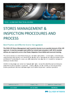 This course is aimed at aviation Stores Managers and Receiving Inspectors. It aims to give a comprehensive understanding of all elements associated with the effective Stores management including the receipt of Parts and Materiel.
