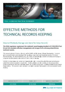 This course is aimed at Technical Records staff in CAMO and Maintenance Repair Organisations. It aims to give a comprehensive understanding of the regulatory requirements and essential aspects of Technical Records keeping.