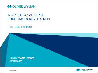 In its second decade, the Oliver Wyman annual MRO survey is an industry standard that samples the attitudes and strategies of executives from across aviation as they address key trends and emerging issues in the maintenance, repair, and overhaul (MRO) sector. Nearly 100 aviation professionals responded to the 2018 survey, with a mix across airline operators, captive airline MROs, independent MROs, and original equipment manufacturers (OEMs). Representatives from leasing organizations, financiers, parts distributors, and advisors rounded out the ecosystem of respondents. This year, 52 percent of respondents to the annual survey were senior executives – either in C-suite posts, vice presidents, or above; 78 percent were director level or above. The sample reflects views across major geographic markets, with North America representing 57 percent of inputs, Europe 25 percent, and Asia 11 percent. The balance came from Latin America, the Middle East, and Africa.