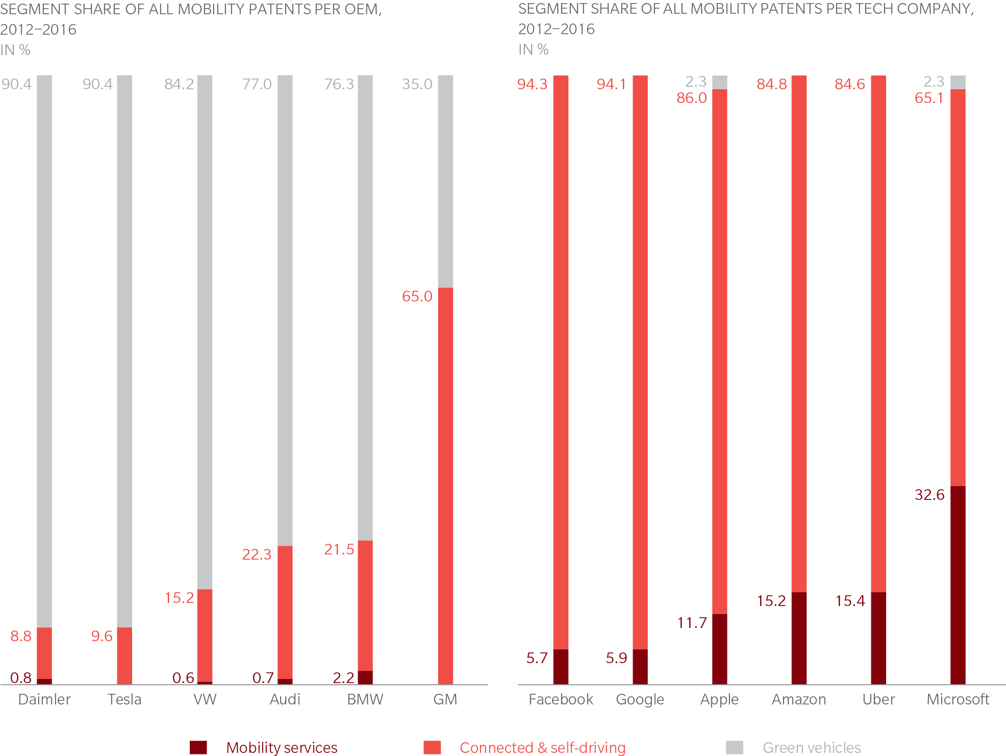 Carmakers focus on producing hardware for mobility services, while techs focus on software