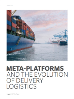 Meta-platforms are thus at the heart of future delivery logistics systems, and even today’s early adopter meta-platforms – such as Amazon’s – have proven to be a road to industry dominance. (Amazon’s meta-platform provides customers with transparency into order status and integrates downstream delivery partners, but as yet does not enable customers to change where and when shipments will be delivered, nor does it fully integrate upstream and downstream transportation options.)